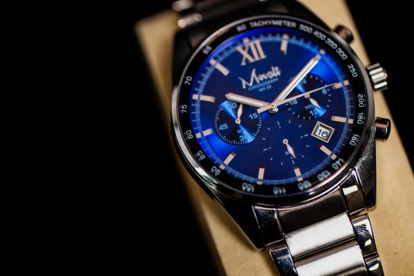 The 41mm Movalt Lazulis features a stainless steel body with Satin-finished Brilliant Blue Dial and chronograph movement.